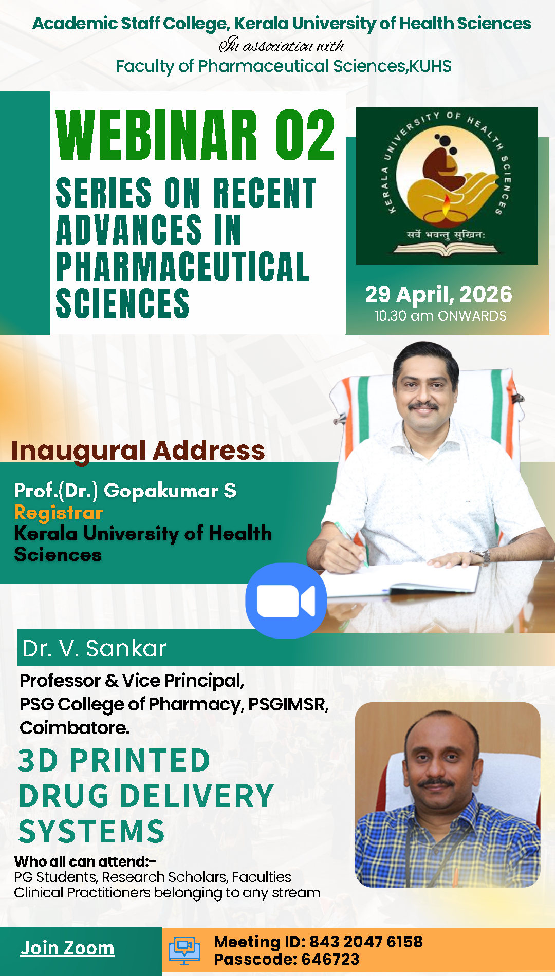 Series On Recent Advances In Pharmaceutical Sciences Webinar-2 – 3D Printed Drug Delivery Systems -Series On Recent Advances In Pharmaceutical Sciences Webinar-2 – 3D Printed Drug Delivery Systems