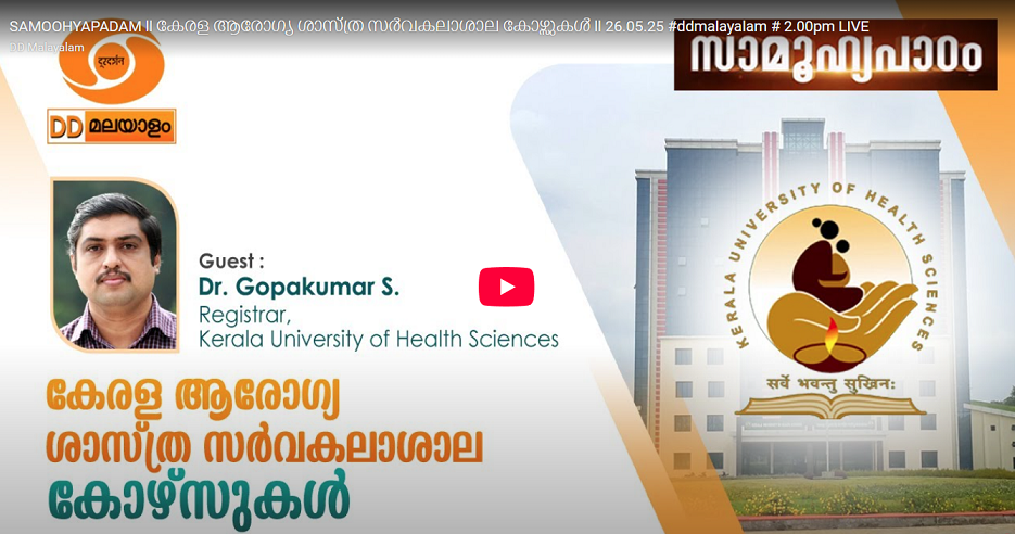 Youtube Link - സാമൂഹ്യപാഠം - കേരള ആരോഗ്യ ശാസ്ത്ര സർവകലാശാല കോഴ്സുകൾ - Dr.Gopakumar S, Registrar, KUHS -Youtube Link Prev Next